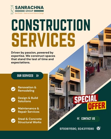 At Sanrachna Group, we provide integrated solutions across Architecture, Real Estate, and Construction, ensuring every project is handled with expertise, innovation, and attention to detail. Our goal is to deliver spaces that are not only visually appealing but also practical, durable, and valuable for the future.